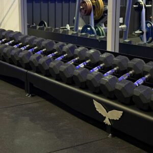 Ons Dumbbell Rek combineert een strakke afwerking, hoogwaardige kwaliteit en een doordacht design, perfect voor professionele sportscholen. Dit robuuste rek is vervaardigd uit hoogwaardig staal en biedt een duurzame en stijlvolle oplossing voor het opbergen van dumbbells.